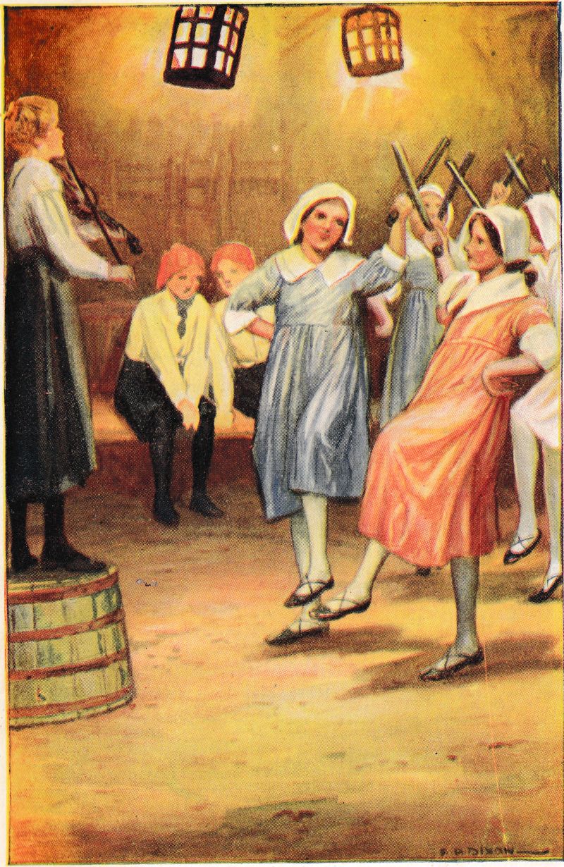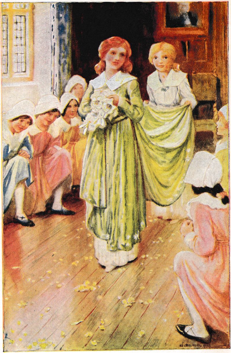 When the pretty ceremonies of the evening were over, abdication and Coronation, the procession, the presentation of the Queen’s medal and gifts, and the plaiting of the Maypole, and Joan sat enthroned in state, with Joy at her right hand wearing her forget-me-nots, the White Queen rose to sing the Welcome Song.