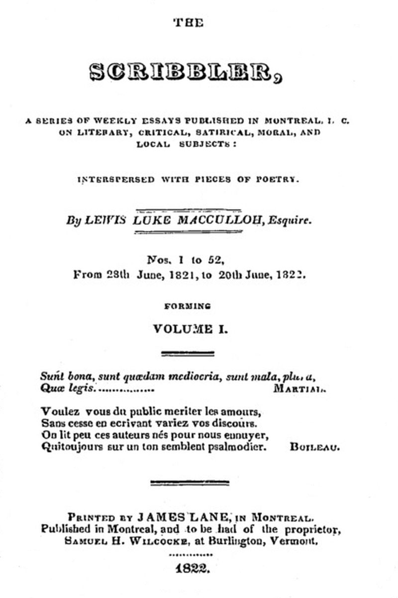 An explanation will appear in next number of the causes of the delay and interruption that have taken place in the publication of the Scribbler. No. 48 and its supplement will appear in a few days; to be followed by No. 49, and so on, until the arrears are brought up; and the volume will begin with No. 53, on an enlarged plan and more moderate terms, as will shortly be announced to the public.