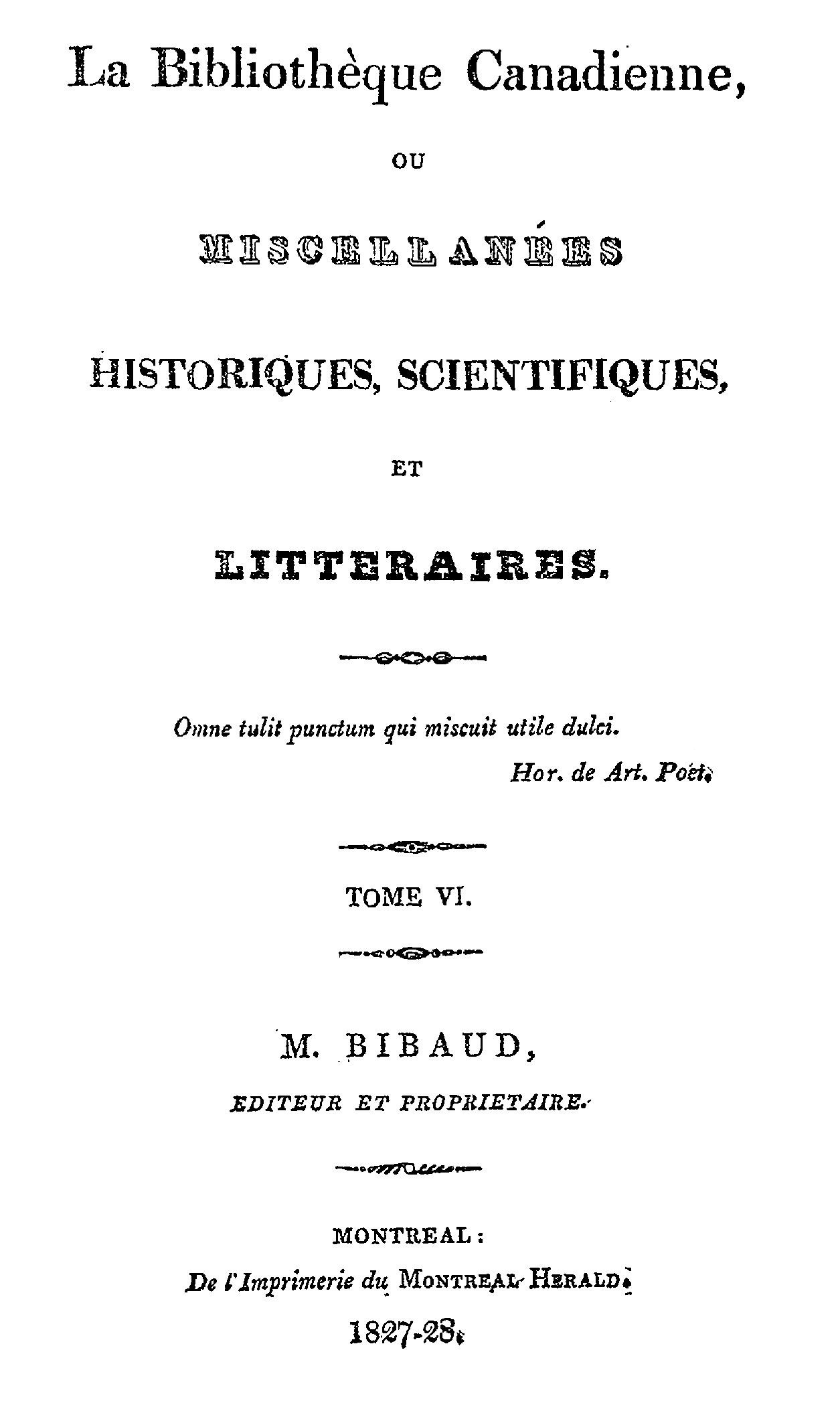 [The end of La Bibliothèque Canadienne, Tome VI, Numero 2, Janvier 1828. edited by Michel Bibaud]