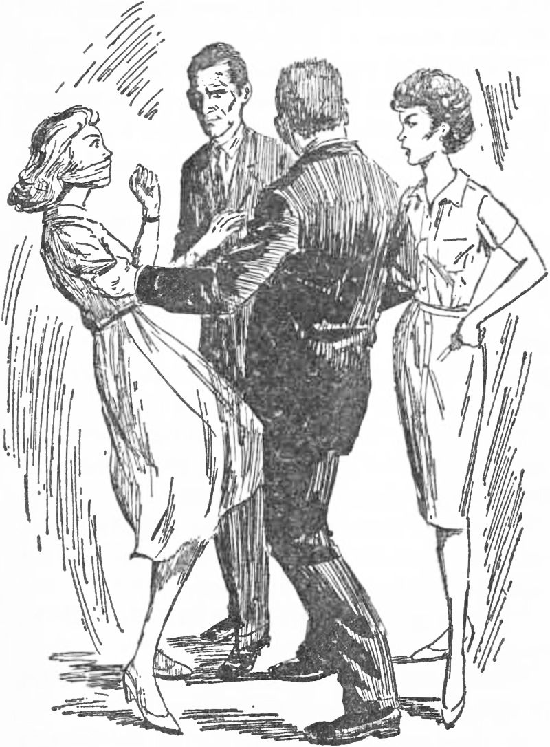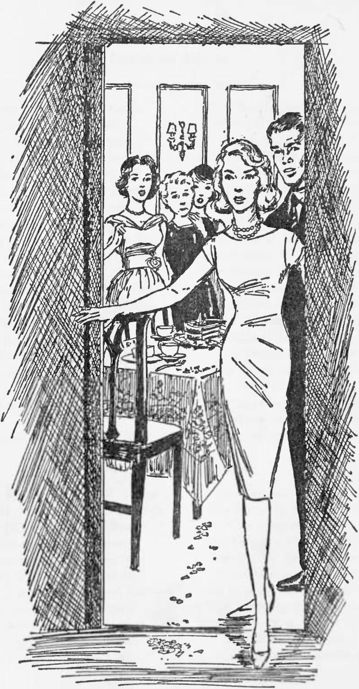 Nancy, meanwhile, had been expecting such a move. Unnoticed by Gay she had backed up several feet. The next moment, as the actress hurled herself toward the rail, Nancy tripped her. Gay went sprawling on the deck.
