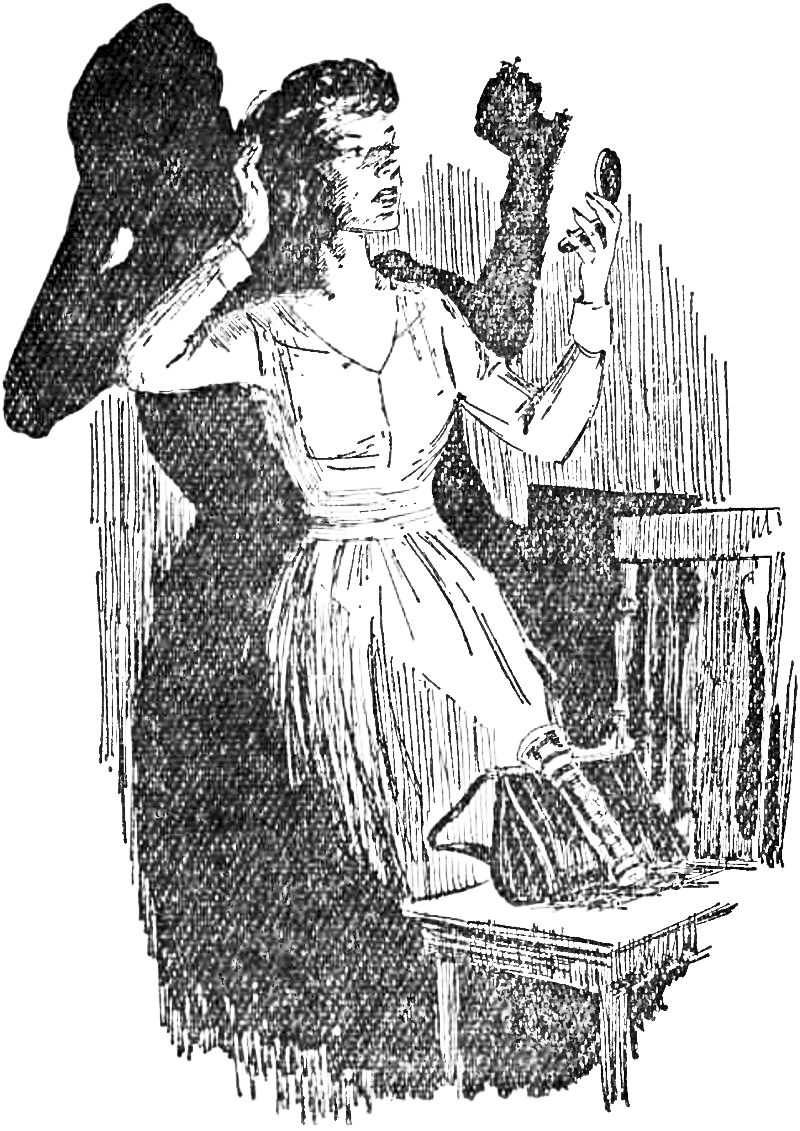 “No, Dad, it’s a disguise!” she exclaimed, and grasped Gay by the arm. With her free hand, she rubbed off some of the actress’s heavy make-up.