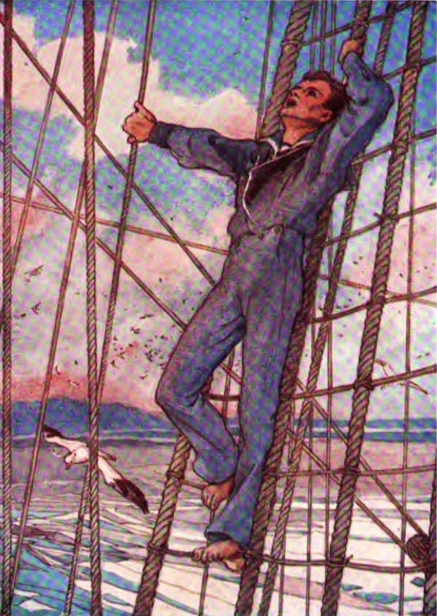 At this moment, a beautiful tenor voice was heard singing up in the rigging: