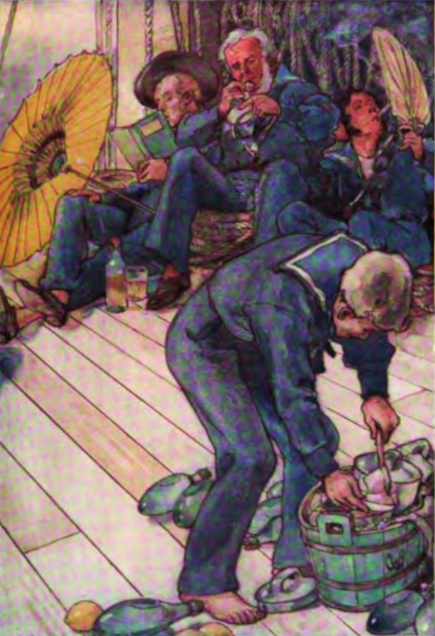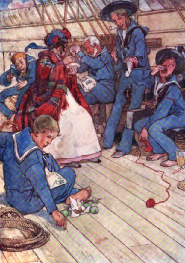 “Let’s change the subject,” said Bill Bobstay (he was the one who ate sugar-plums in bed), “we all have our faults. But, after all, we’re not so bad as poor Dick Deadeye—that’s one comfort!”