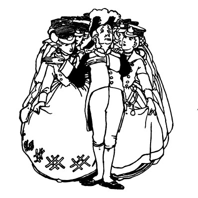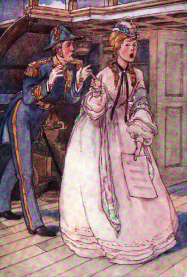 This had been carefully arranged by Little Buttercup herself. Knowing that the time had come when it would be necessary that she should reveal her secret, she had previously caused one of Captain Corcoran’s uniforms to be conveyed to Ralph’s quarters, and one of Ralph’s uniforms to be placed in Captain Corcoran’s cabin, with a note, pinned to each bundle, explaining the condition of affairs. Now we see what Little Buttercup meant when she sang those mysterious lines to Captain Corcoran about things being seldom what they seem, skim-milk masquerading as cream, and so forth. Oh, she was a knowing one, I can tell you, was Little Buttercup!