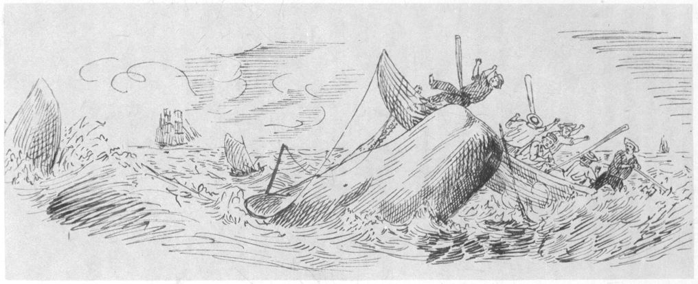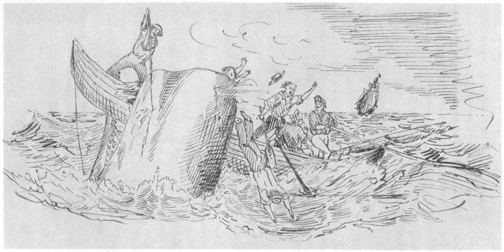 The New England whaling industry was then at its peak. During the very time these adventures occurred, Herman Melville, home from like experiences in South Pacific waters, was engaged in the composition of Moby-Dick. As will be seen, Haley’s Captain Sampson was not another Captain Ahab. Although he was, in Haley’s opinion, as strict a man as sailed out of New Bedford, ships under his command were asked to engage in no metaphysical quest. Oil was the object. When a day-old calf whale stove one of the ship’s boats and nudged up to a second, mistaking them for its mother, the penalty of inexperience was an iron in its hide. “The poor little thing,” Haley calls it; but when it had been hoisted aboard by the flukes, whole and entire, “He made,” he adds, “about two barrels of oil. . . . The little whale gave us boat-steerers a fine lesson in regard to the anatomy of its species, and was to me a great help in reaching the life of many a sperm whale later on.”