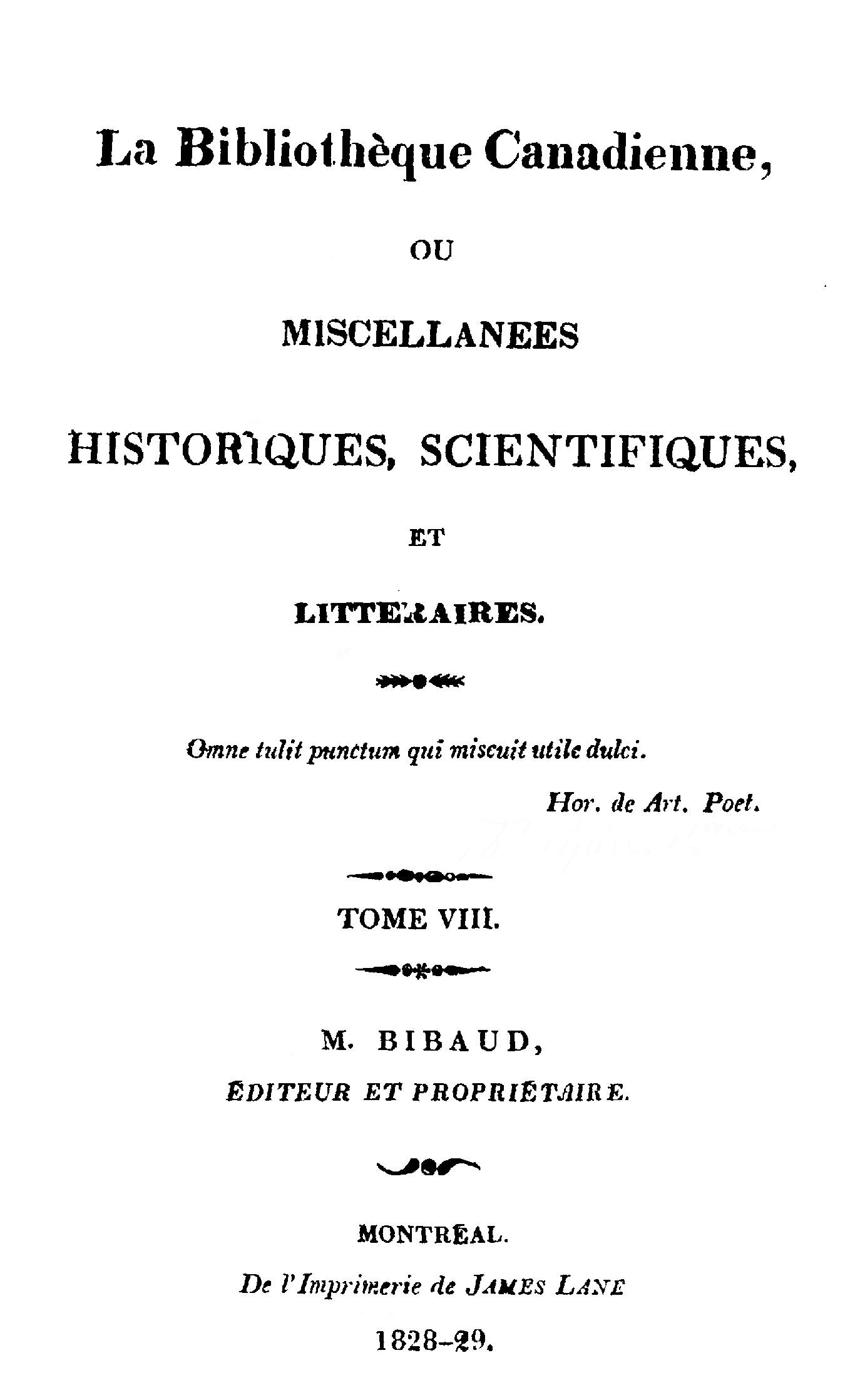 Title: La Bibliothèque canadienne, Tome VIII, Numero 6, Mai 1829.