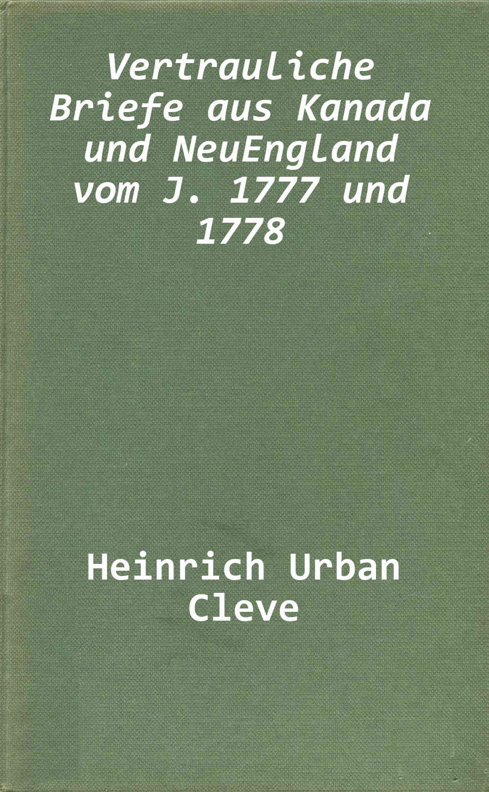 Title: Vertrauliche Briefe aus Kanada und NeuEngland vom J. 1777 und 1778