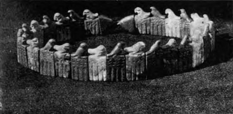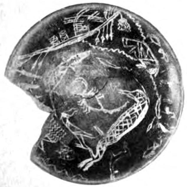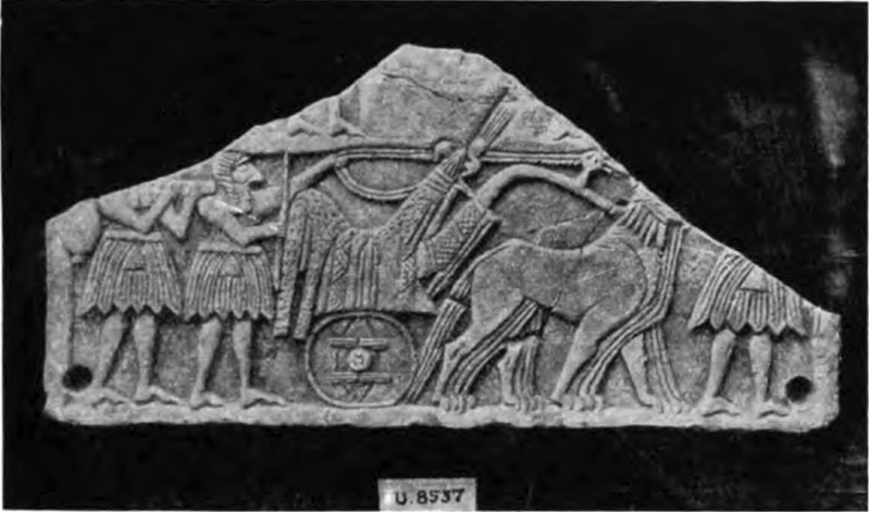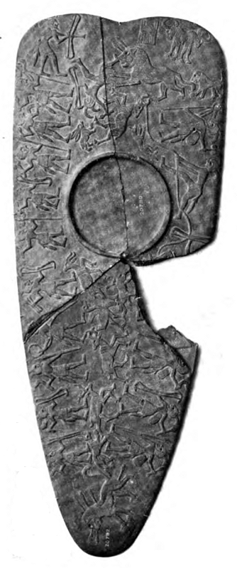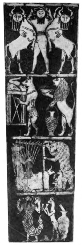 Shell inlay from Royal Tomb at Ur, by the courtesy of C. L. Woolley, Esq., and the Joint Expedition of the British Museum and the University of Pennsylvania