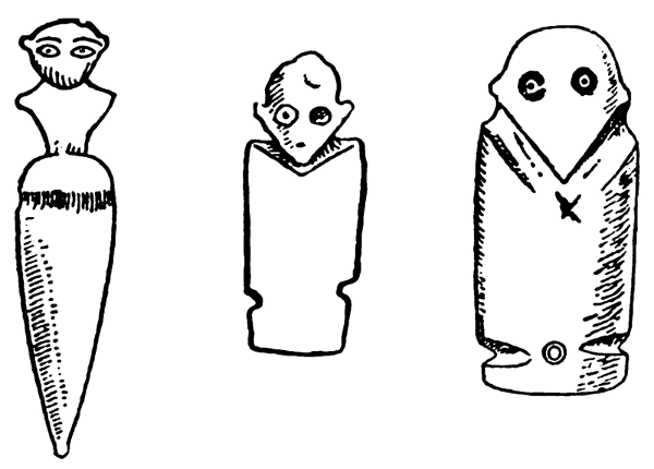(c) al ’Ubaid figurines, Ur. British Museum.