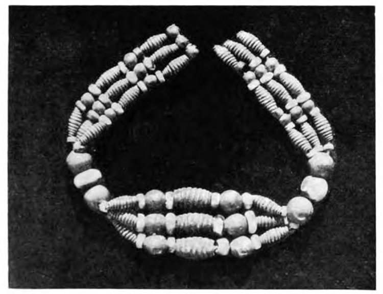 Bracelets from tomb of King Zer. Courtesy of Egypt Exploration Society. The beads consist of gold, lapis, and amethyst, ¾