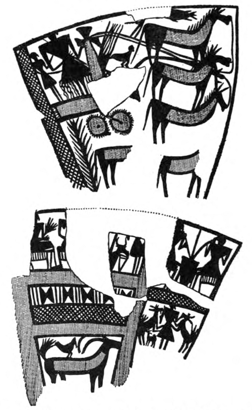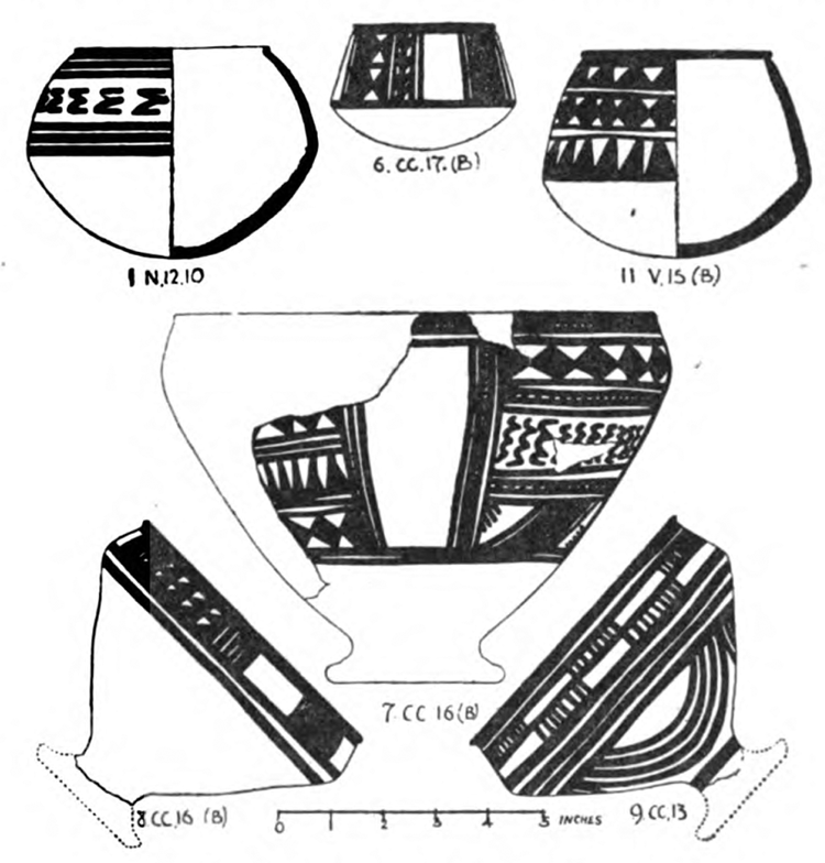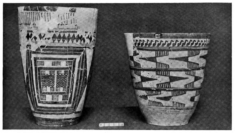 (b) Polychrome vases from Jemdet Nasr. Ashmolean Museum, Oxford.