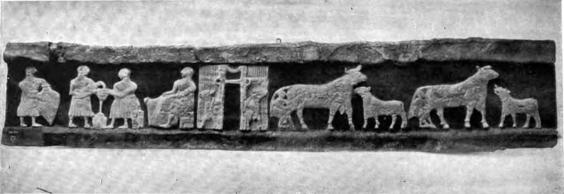 Milking scenes from walls of A-anni-padda’s temple at al ’Ubaid. British Museum.