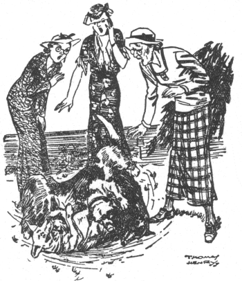 As long as he could keep the attention of Ethel and her swain concentrated on the side of the bridge away from those two dripping, speechless, furious figures, the awkward moment might still be tidied over.