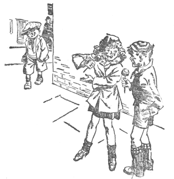 And then—a strange and unexpected sight met their gaze. Across the bridge came Ethel, dainty and immaculate, accompanied by Jimmie Moore. She had waited till after three o’clock, and then had decided with much chagrin that both her suitors had failed in the test. At any rate, she thought angrily, she wasn’t going to sit there waiting for them any longer. It was just when she had come to that decision that Jimmie Moore had arrived to ask if she would come to the tournament with him. He had already written to this effect and as usual, had received no answer, but he had a fund of quiet persistence that made him not quite so negligible a rival as Richard and Charles had believed.