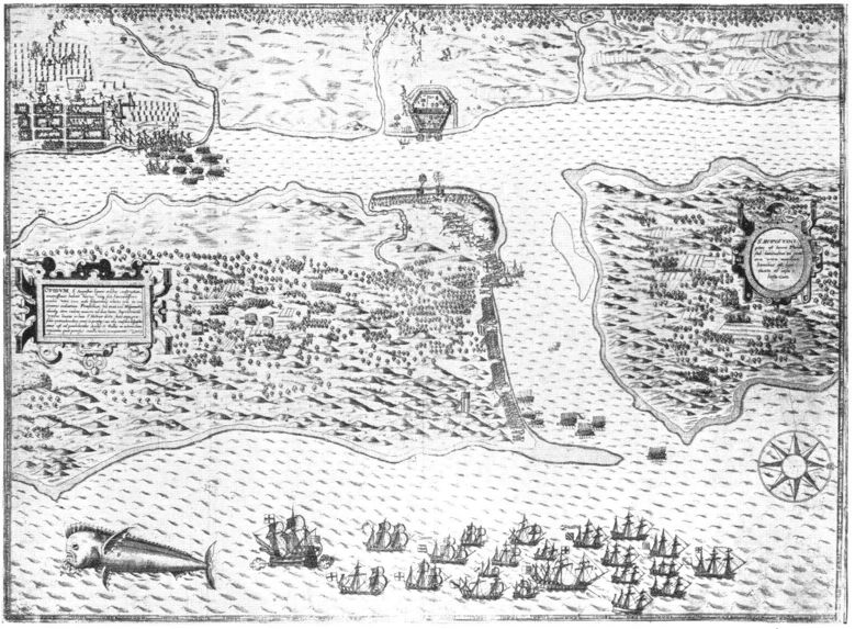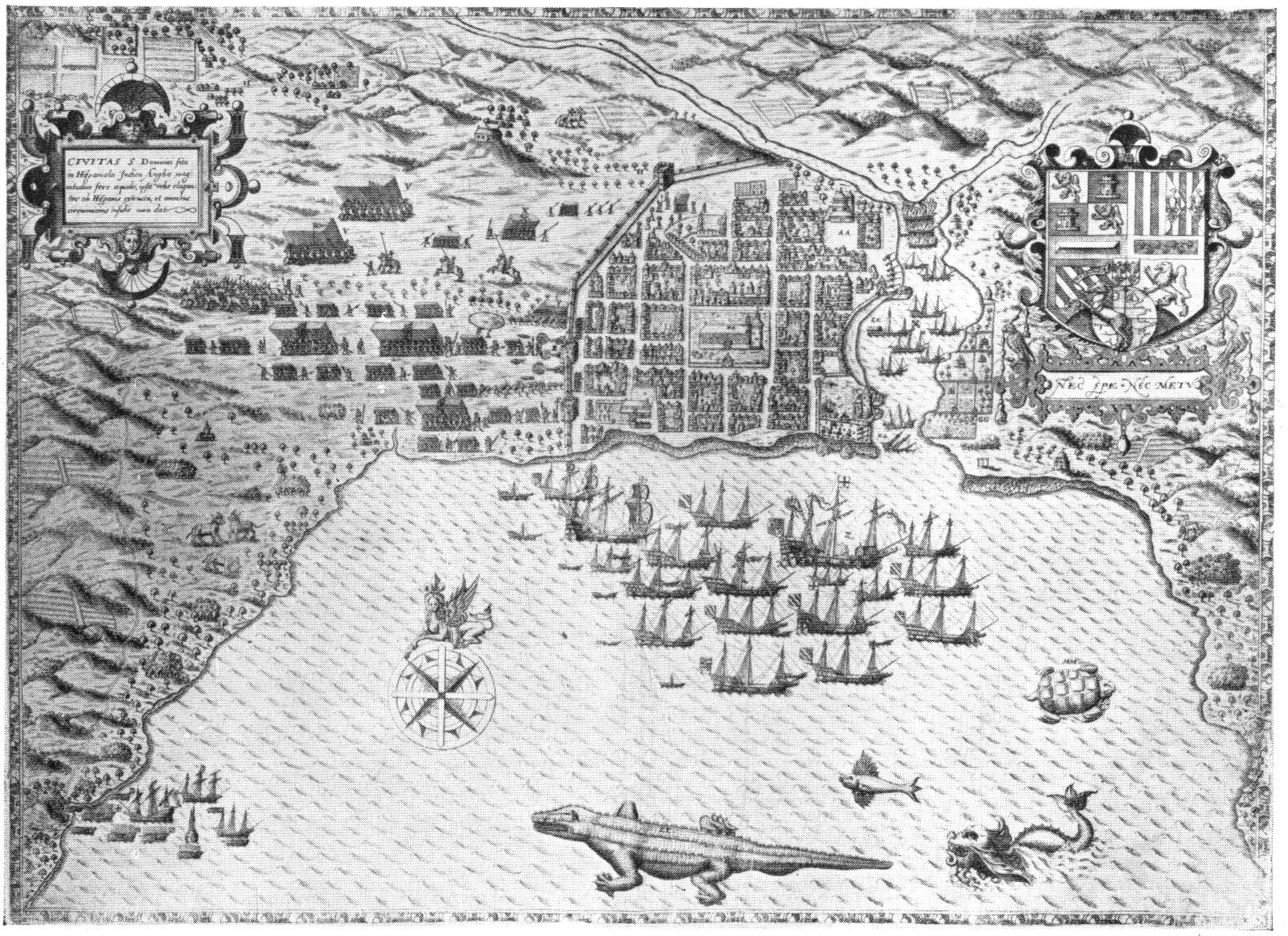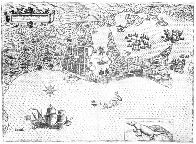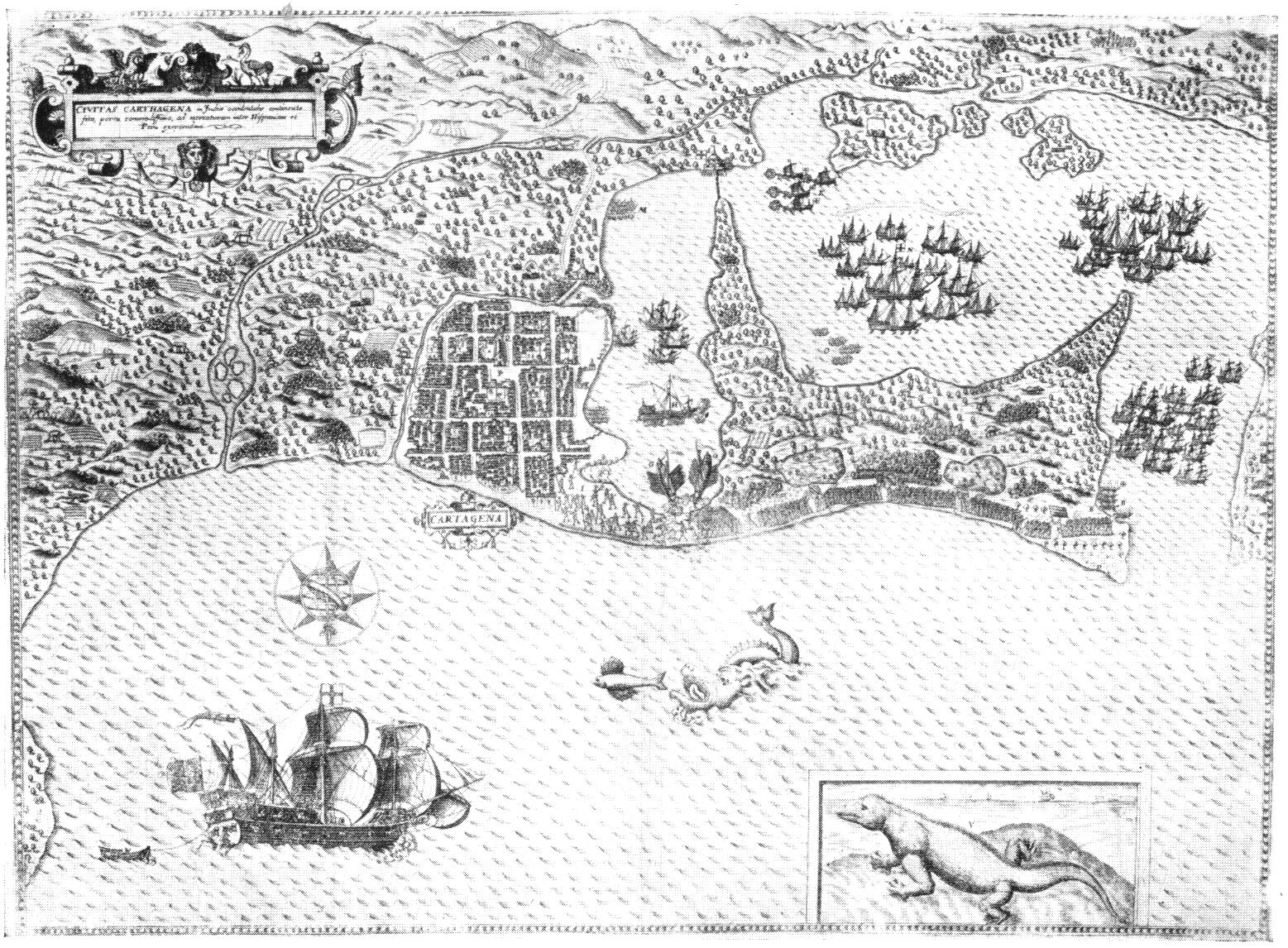 Note.—The Milliard Miniature is reproduced by the kind permission of the Earl of Derby. The four charts of the Spanish Main towns raided by Drake in 1585 are taken from the Expeditio Francisci Draki, Leyden, 1588. The Armada picture is contained in a German version of Franciscus Dracus Redivivus, entitled Kurze Beschreibung, Amsterdam, 1596.