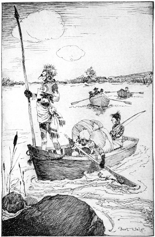 Well, we took in the fun for ten or fifteen minutes. Then we got into Peg’s rowboat and started for home. It was easier for us to ride in the rowboat and tow the raft. We could make better time that way.