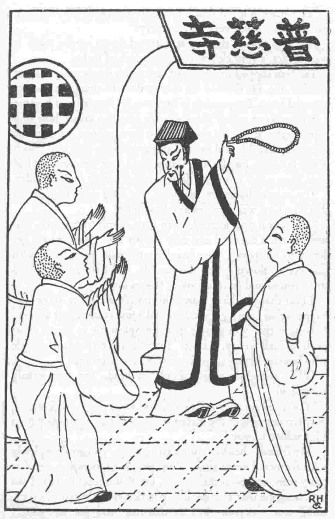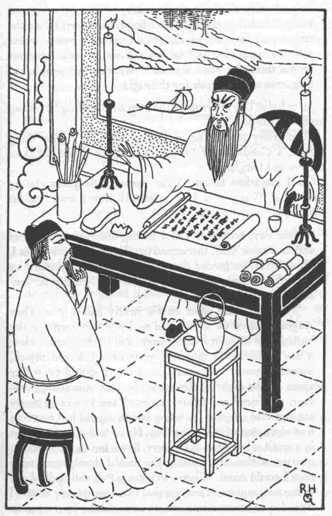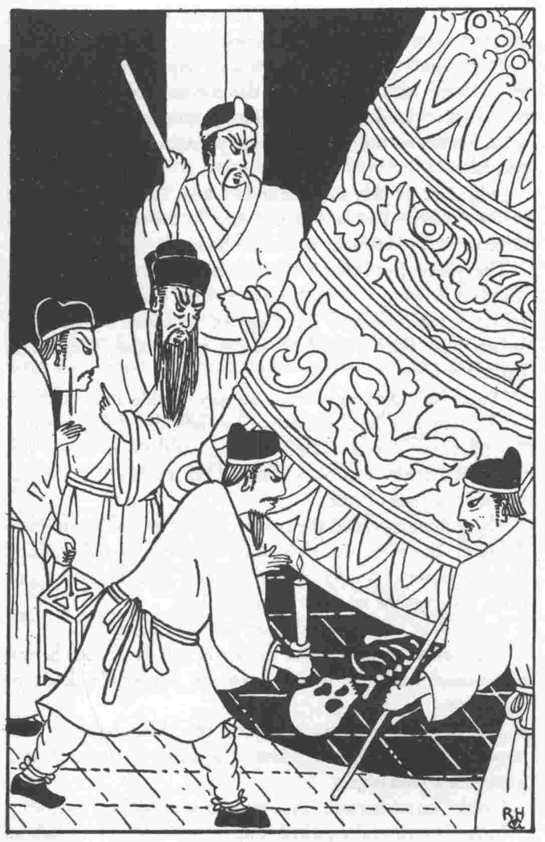 The flogging of the mats utilised in the twenty-fourth chapter was suggested by the following story: ‘When Li Hui of the Later Wei Dynasty (a.d. 386-534) served as Prefect of Yung-chou, a salt carrier and a wood carrier quarrelled about a lamb-skin, each claiming it as the very one he used to wear on his back. Li Hui ordered one of his officers: “Question this skin under torture, then you will know its owner.” All the officers were dumbfounded. Li Hui had the lamb-skin placed on a mat, and had it beaten with a stick; then grains of salt came out of it. He showed them to the contestants, and the wood carrier confessed’ (c.f. R. H. van Gulik, T’ang-yin-pi-shih, ‘Parallel Cases from under the Pear-tree,’ a thirteenth-century manual of Jurisprudence and Detection, Sinica Leidensia, Vol. X, Leiden, 1956).