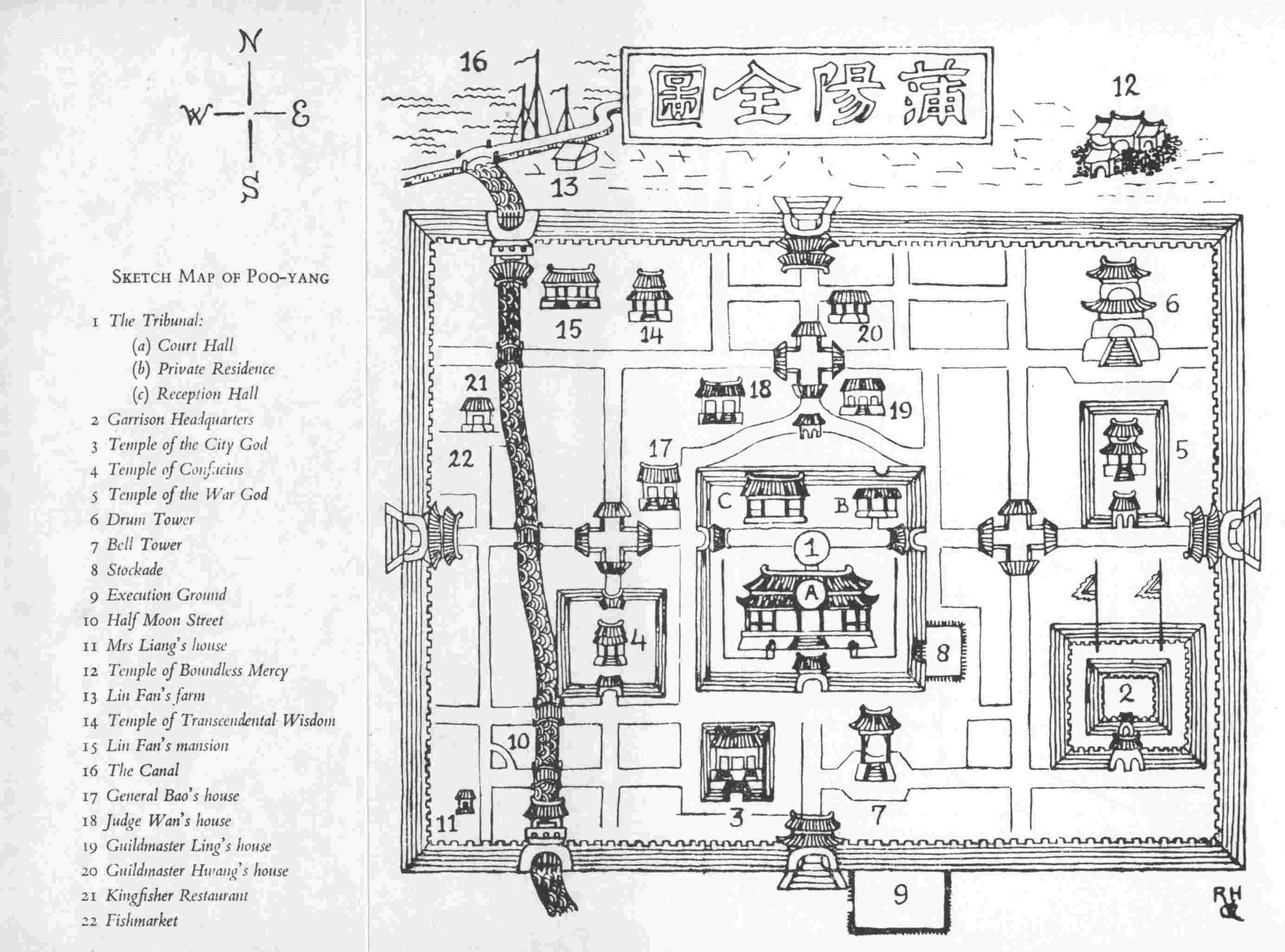 The scene of The Chinese Bell Murders is laid in Poo-yang, an imaginary city in Kiangsu Province; a map will be found in the endpapers. Information on crime, detection and court procedure in ancient China, and on the Chinese sources utilised, is given in the Postscript.