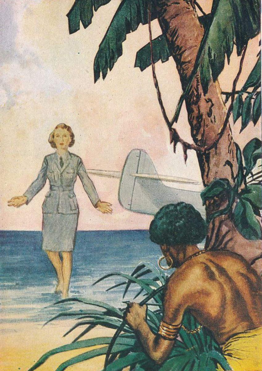Frankly, Worrals doubted this, but she was not prepared to argue about it. “We have cause to be grateful to her,” she acknowledged, with her eyes on the northern sky, which had now become more threatening. “But it won’t do us any good if we stand here talking about it. This is our chance and we’d better grab it. Let’s be going while the going’s good.” She spoke confidently, but she was wondering if the Scud would get off the water with its load—now augmented by Billy and his two native deck hands. Fortunately, as it now transpired, due to their privations most of the castaways were well below average weight; but Billy Maguire weighed as much as two ordinary men.