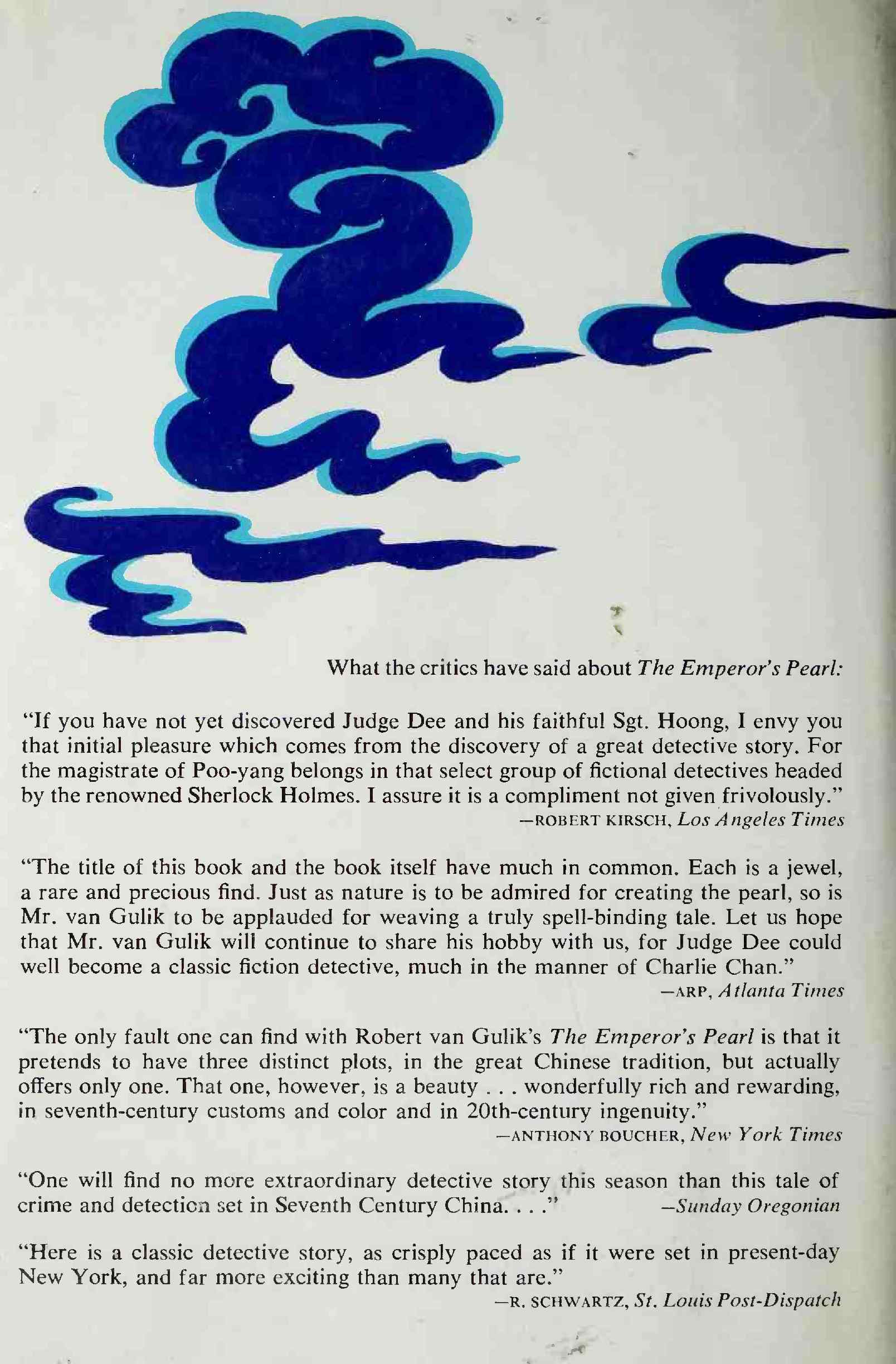 Hoo fastened his eyes on the judge. He opened his mouth to speak, but Judge Dee went on quickly: