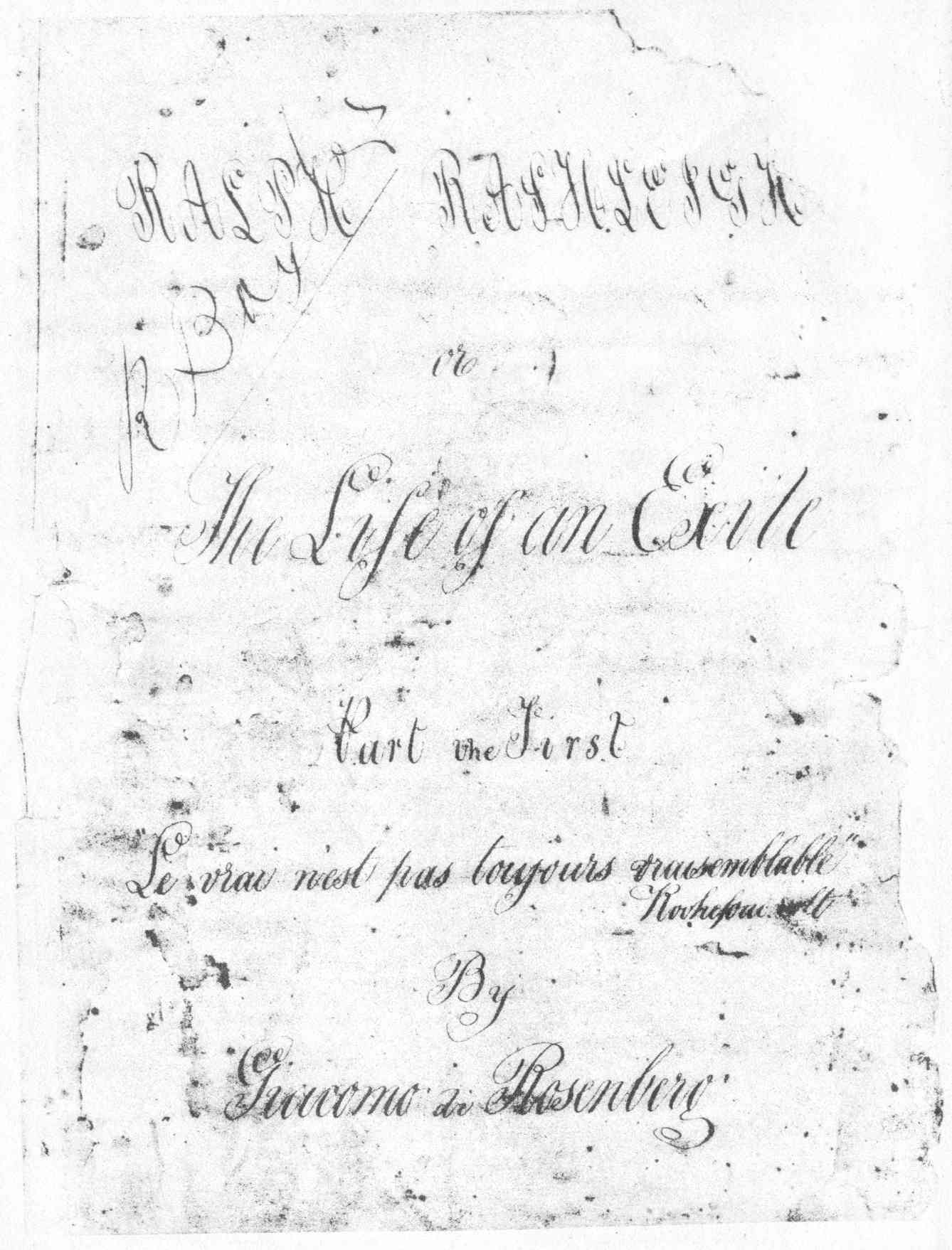 The Author’s name on the title page is given as Giacomo di Rosenberg, and, upon one or two plays in manuscript which were found with the Rashleigh manuscript, the name of Otto von Rosenberg appears. From this conjunction of names it would seem that both are variations of a pseudonym. There is also an introduction to the narrative which is as follows:—