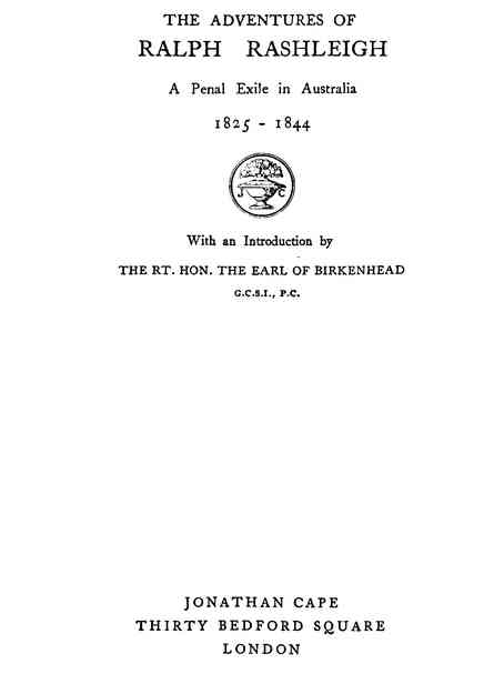 It has been impossible to identify the Squatter or the hero of the tale, although the events recorded have been verified and there are a hundred points which prove the narrative to be authentic. The name, Ralph Rashleigh, is admitted to have been an alias, and careful research into existing records suggest that it is actually an alias of an alias, since, while one of the characters who was in Newgate Prison with him has been authenticated, in an ensuing footnote, by an account of his trial in the Sessions Papers, there is no record of the trial of any man named Rashleigh for the crime recounted in the book. It would seem that every name, except those of public persons, which occurs in the narrative has been deliberately altered. The reason for this is, doubtless, that the book was written, and intended for publication, very soon after the events with which it deals had occurred, and when many of the people mentioned were alive. The Squatter’s note is dated 31st December, 1845.