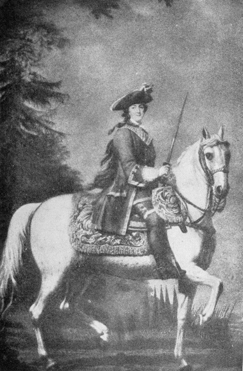 Fike must have been deeply interested in the eccentricities of all these spinster ladies since she remembered and described them so vividly so many years afterwards. Her mother, the Princess Johanna Elisabeth, towered above other women and also above her honest and pious consort, undoubtedly a superior being. The Princess had a way of absorbing the whole environment within herself and becoming its embodiment. Fike writes, for instance, “My mother had that year an extraordinary adventure on the return journey to Stettin.” As the story develops, one learns that Fike herself, the ever-present Khayn, another attendant, and several postilions, shared along with Fike’s mother the adventure of being lost in a terrible snowstorm. On another occasion, when Frederick the Great ascended the throne, Fike says, “When my father had received in the name of the King of Prussia the allegiance of Pomerania, my mother journeyed to Berlin.” There several events took place at court in the account of which the General is not mentioned. Presumably as the Governor of Stettin, he accompanied the party and had his day at court as well. In the eyes of his little daughter, moving in her accustomed place in mother’s entourage, the General appears to have played a minor part even when he was officially the center of the picture.