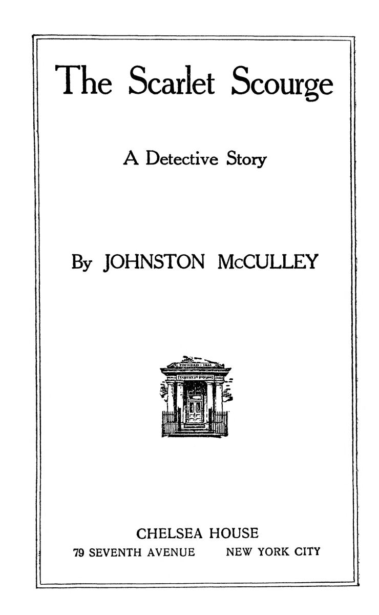 “Brayton was killed, and somebody killed him—somebody in this room!” Haynes insisted. “This girl says that she is The Scarlet Scourge! She held him up in that room in there—had a weapon in her hand——”