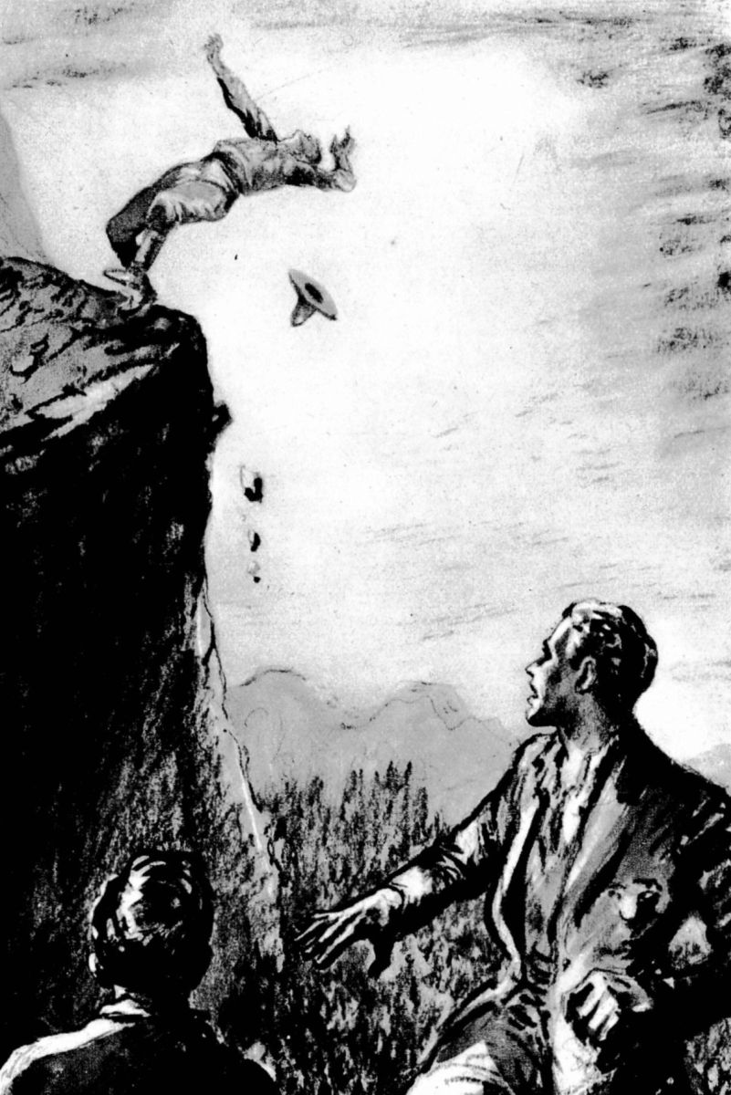 With a mighty crash something landed beside him. He thought it was Trapper. It was not. It was the winged statue that had been brought out of the cave ready for transportation down the hill. The wrapping had been ripped off in the fall; the head was broken off at the neck, yet, curiously enough, an arm remained intact to point stiffly at the sky. To Cub it was no longer of interest. He went on, vaguely aware that Trapper was close behind him.