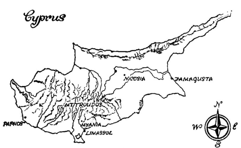 The island of Cyprus, a British Crown Colony, is a hundred and forty-five miles long with an average width of forty-five. It lies at the eastern end of the Mediterranean, with Turkey to the north, Syria to the east and Egypt to the south, a position which, through the ages, made it the hub of the Old World, and, at the same time, a battlefield for the many races of three continents. Coveted by every great power since history began, its story has been one of war, massacre and persecution. As if that were not horror enough, it has over and over again been rocked into a state of devastation by earthquakes.
