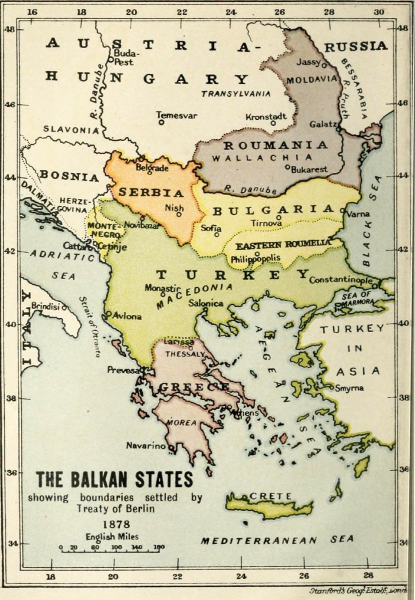 For a little while he was all abroad, and at the bidding of Midhat, who had placed him on the throne, he summoned a kind of representative Turkish Parliament, by way of imbuing the Great Powers with the idea that he was an enlightened Shadow of God bent on reform. This parody of a Parliament lasted but a short time: it was no more than a faint, dissolving magic-lantern picture. In the spring of 1877 Rumania, under Russian encouragement, broke away from Turkish rule. Turkey declared war on Russia, and in 1878 found herself utterly defeated. At Adrianople was drawn up the Treaty of San Stefano, creating an independent Bulgarian state, and, in the opinion of Great Britain and Germany, giving Russia far greater influence in the Balkan Peninsula than was agreeable to that disastrous supporter of Turkey, the Balance of Power. In consequence the Treaty of San Stefano was superseded by the Treaty of Berlin.