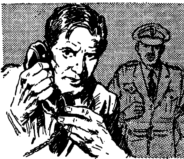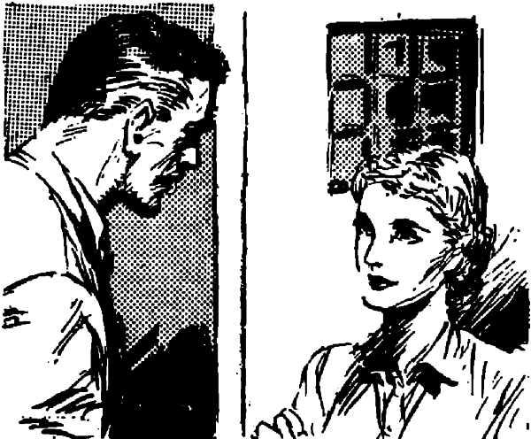 The man with the half-bald head had a rather square face, clean shaven. His eyes were set wide apart and there was a grim set to his jaw, although in the ordinary way this would not have been noticed. His movements were slow and deliberate. Another of the trio was almost his exact opposite, being lean, with deep-set eyes that were never still under straight black eyebrows that met above the nose. He had a thick crop of hair without a parting. The third member was as conventional a type as could be met anywhere. His face was pale, his mouth wide with lips thin and bloodless. He looked as if he might have been ill. He kept a cigarette going through the meal and coughed frequently.