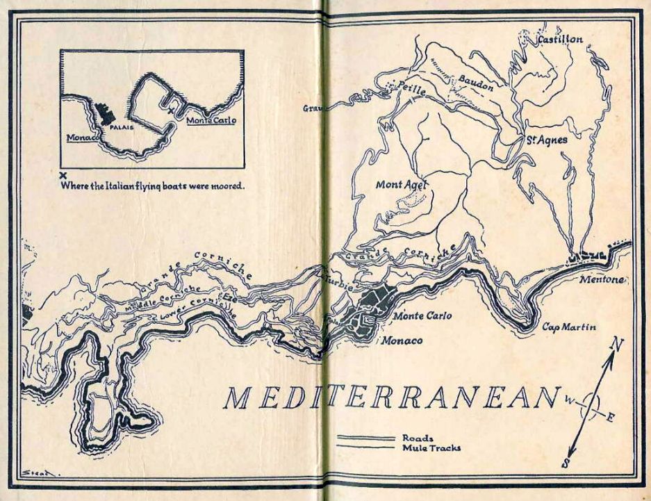 Away to the left searchlights were still quartering the sky, seeking the aircraft, but Ginger wasted no time on them. Concentrating his attention on the sea off Cap Martin he made out a small black speck.