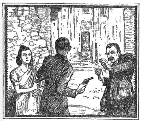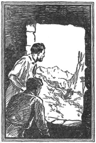 The jeep stopped with a jerk. The troops jumped out, and with rifles and Tommy guns[2] advanced suspiciously, a sergeant ahead of the rest.
