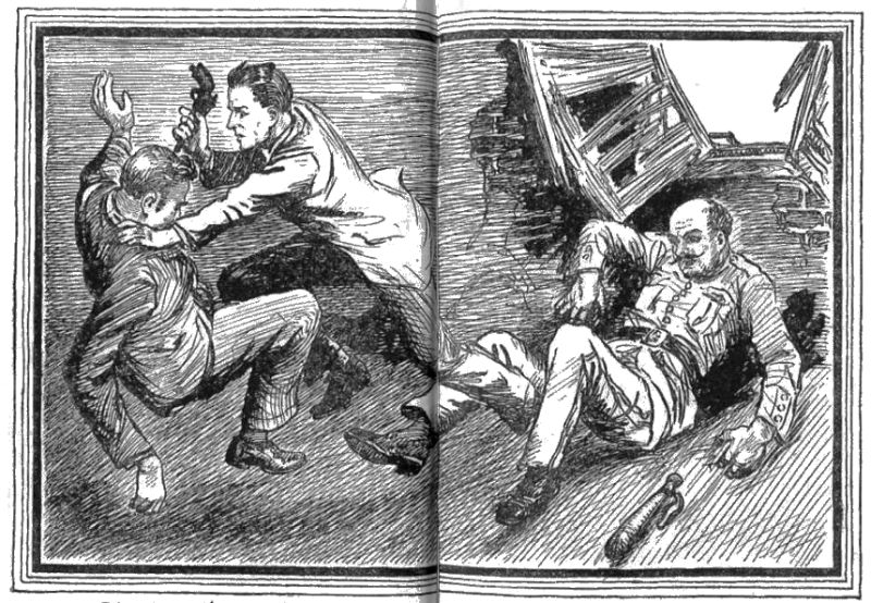 As Ginger slammed the door a shell screamed overhead and flung up a plume of water a hundred yards beyond. He hurried through to the cockpit and saw that Biggles was back in his seat. Glancing out of a side window he observed little tongues of fire spurting from the sombre mass of Mont Agel. More shells screamed.