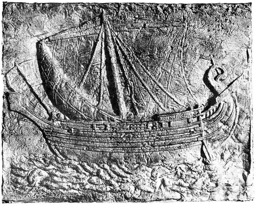 Well was it for the progress of mankind in seamanship that even the Eastern Mediterranean in summer could put men on their mettle. To sail on a sea always as smooth as a duckpond never yet made a seaman. Difficulty and danger, if not overwhelming, have ever developed resourcefulness; and that sea, while not terrifying early man as the Ocean did, early called forth his powers of invention. Though its storms forbade navigation in winter, yet the long spells of calm in summer characteristic of that sea compelled seamen to adopt the best possible means of propulsion then available, that is, the oar. For the carriage of a heavy cargo paddles are of little avail. They may suffice for North American birch-bark canoes or the narrow “outrigger” canoes of the Polynesians, but they cannot propel loads of metal or of tunny far over a sea often beset by summer calms. Surely these climatic conditions must have favoured the substitution of the oar for the paddle.