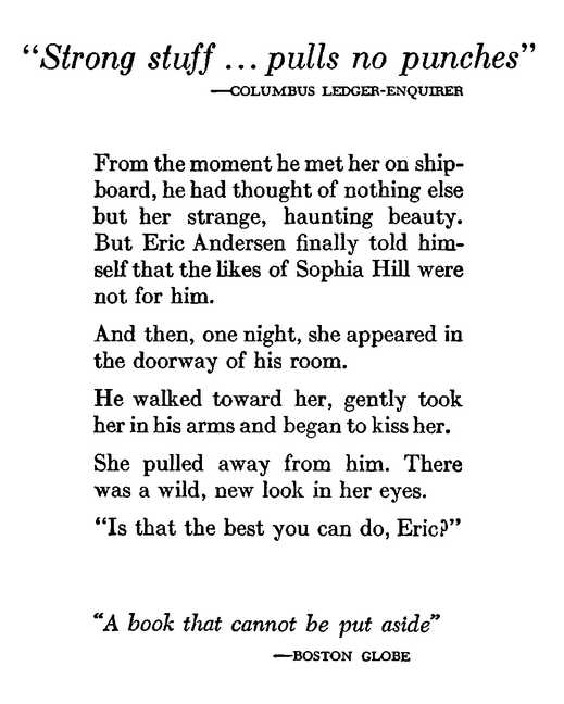 The story of the S.S. Princess Sophia embraced in this book is true in the main. I have used the real name of her captain, L. P. Locke, and depicted him according to the description given me by one of his fellow ship captains. The scene of his naming of the vessel after Sophia Hill is fictitious. His thoughts and remarks related here are fictitious, although in keeping with my concept of his character. The real names of some of his officers and of the captains of other vessels concerned with the story of the Sophia are given. The behavior of her passengers and crew during the crisis is described according to my concept of the Alaskan.