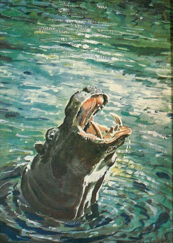 The hippo looked at the aircraft, yawned, snorted and submerged (page 18)