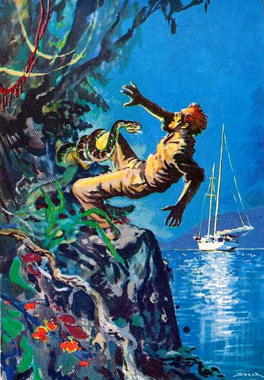 “About the Colonel being a soldier. He was a major in the U.S. Army in the Pacific War against the Japs. Later, he became a paymaster in the Korean War. It seems he got in some sort of mess over money and skipped with the regimental pay. After a while, when he couldn’t be found, it was thought he must have slipped through the Iron Curtain. But they hadn’t forgotten him, and when the Air Commodore sent those snapshots round to the American Embassy, in London, they must have really got cracking. Apparently a radio signal was sent to American Headquarters in Formosa to pick up the Colonel, collecting one of us at Kuala Lumpur to act as guide. I happened to be there and that was that. The General pushed me in with his lot and we came straight on. Is the Colonel still here? I know he didn’t get away in the yacht because as we came in I could see it had been burnt out. Was that you?”