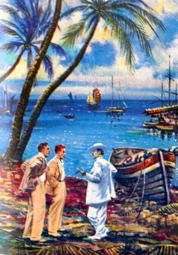 “As I’ve said,” resumed the Air Commodore, “the Shima was on a pearling venture when she was interfered with. Tidore says they had been to the region of the Nicobar Islands and shortly after noon were on their way home with a rich catch when, surprisingly, for they were far from any air route, an aeroplane appeared. It came low, circled them twice, and then made off in the direction from which it had come.”