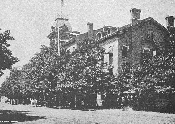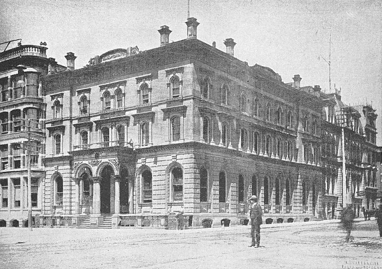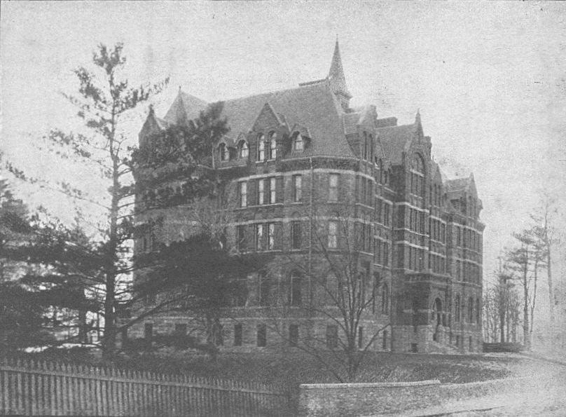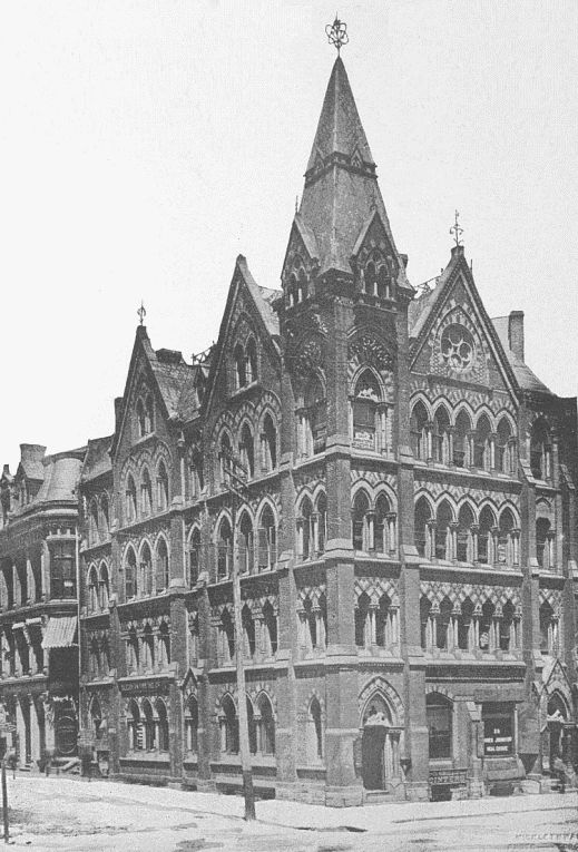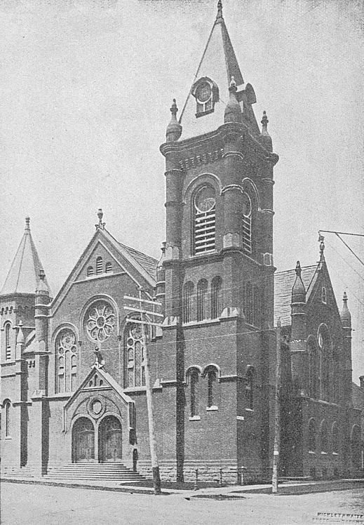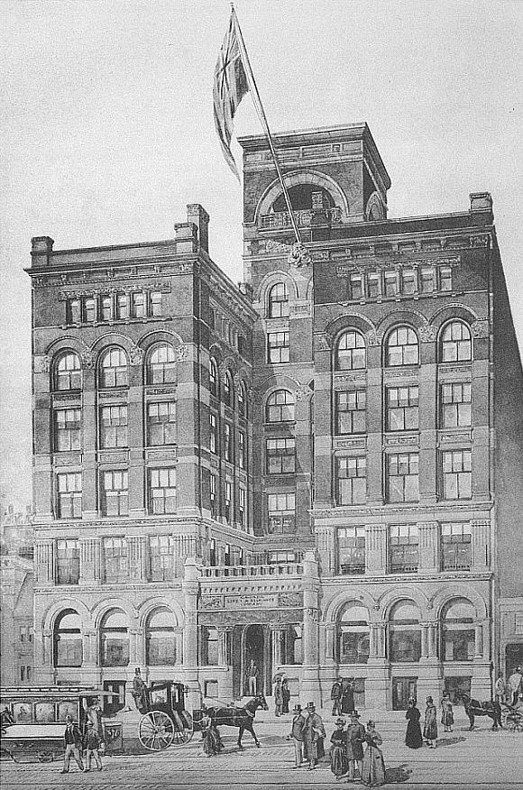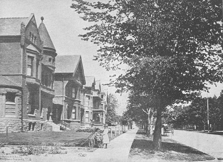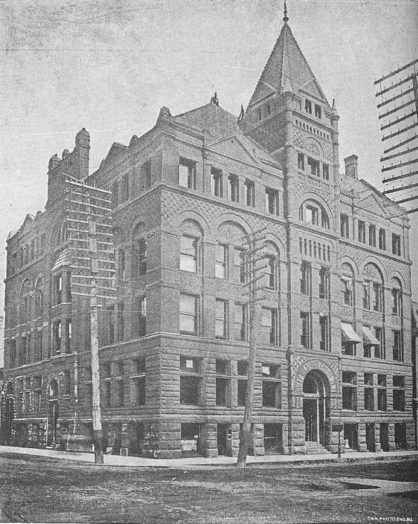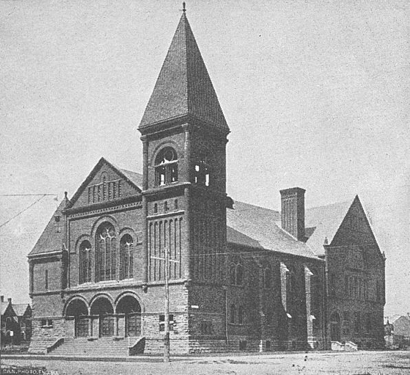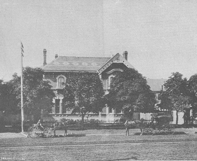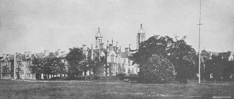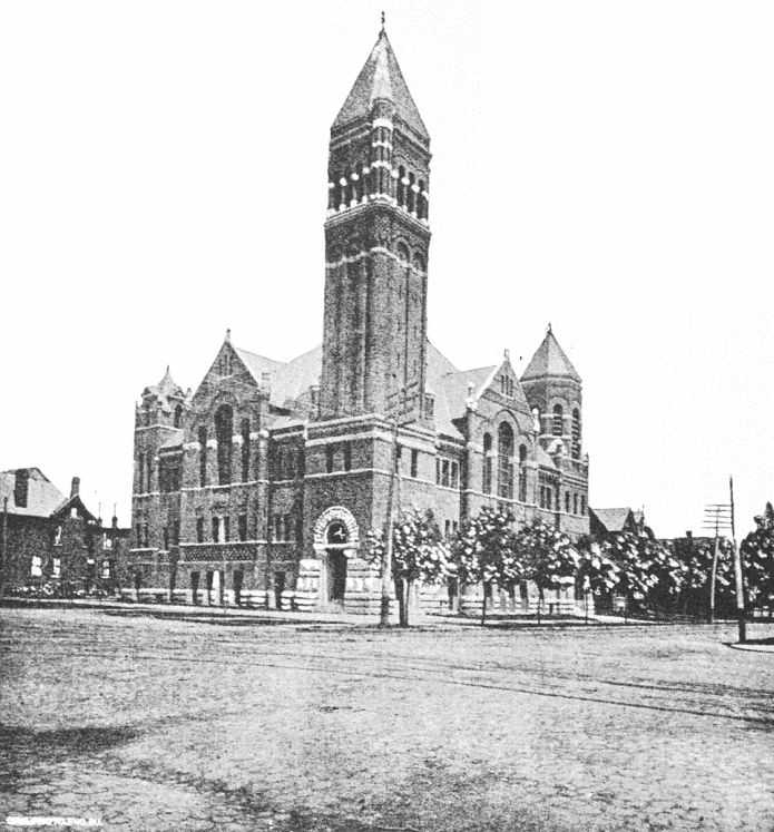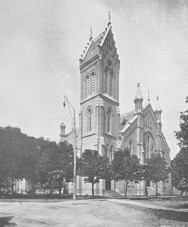 Happily for Toronto, the town was from the first laid out, like Philadelphia and Washington, in accordance with the theories of the idealists, and it has had scarcely anything to correct in its general ground-plan, which was simply that of a parallelogram divided into parts by straight streets, generally sixty-six feet in width, running east and west, traversed by straight streets of about the same width, running north and south. Its site—a widely-extended, gently sloping plain—admitted of this, and from the time of its first projection, in 1793, on a very modest scale hard by the outlet of the River Don, to the present, when, through a populous suburb and a park, the munificent gift of the late Mr. Howard, its borders all but touch the Humber, some six miles westward of the starting-point, the germ-idea of the place has not been materially departed from. One thoroughfare north and south was staked out on the Toronto plain, some fifty years ago, of the exceptional width of one hundred and thirty-two feet, but grave persons of the period shook their heads and pronounced the notion extravagant and even visionary. It has come to pass, nevertheless, that this thoroughfare is a reality, and its width is not considered now as being anything especially out-of-the-way for a street which seems likely to be in the future the axis of Toronto, its dividing line into east and west. Unfavourable to the picturesque as is the parallelogram arrangement of streets in theory, in practice a good deal of impressiveness often results therefrom, and even beauty, so long as the roadways are wide and the building-lots continue to be spacious. Fine vistas are secured, and in certain localities the array of comfortable residences coming in quick succession on both sides is a sight quite pleasant to see. The free currents of pure air, too, which this arrangement permits, and the facilities which it affords for a good system of sewers, are points in its favour. Their city planned from the beginning on ideal lines, the inhabitants as their riches have increased have shown themselves well inclined to give some play to the ideal in several respects. Their churches, for example, have become very numerous, and quite sumptuous. From several points of view, the sky-line is agreeably varied by the spires, towers, gables, turrets and pinnacles appertaining to these, while, below, the buildings themselves are most of them good specimens of style and substantial masonry, with extensive grounds surrounding them in several instances, tastefully planted and carefully kept; the church itself consisting not merely of a solitary temple, as formerly, but of a cluster of apartments or halls, all of them rendered necessary by the exigencies of the church life revived everywhere in these days—schools, lecture-rooms, class-rooms and libraries, to say nothing of appliances in some of them for the more convenient furnishing forth of acceptable mundane refreshments to large social gatherings on festive occasions.