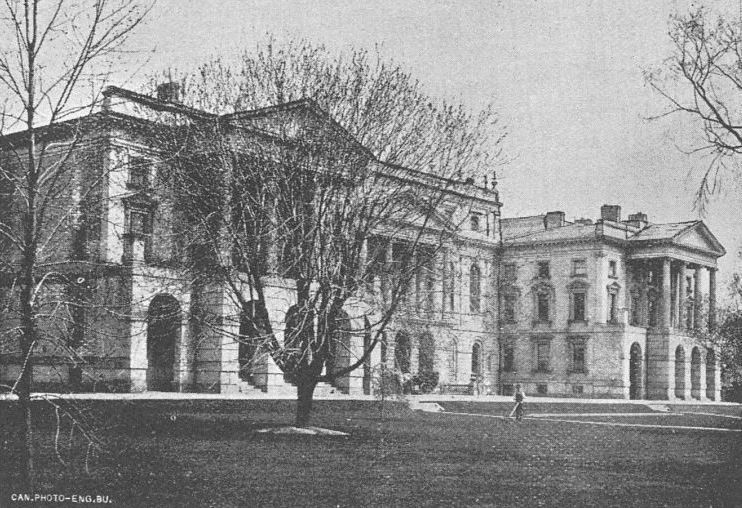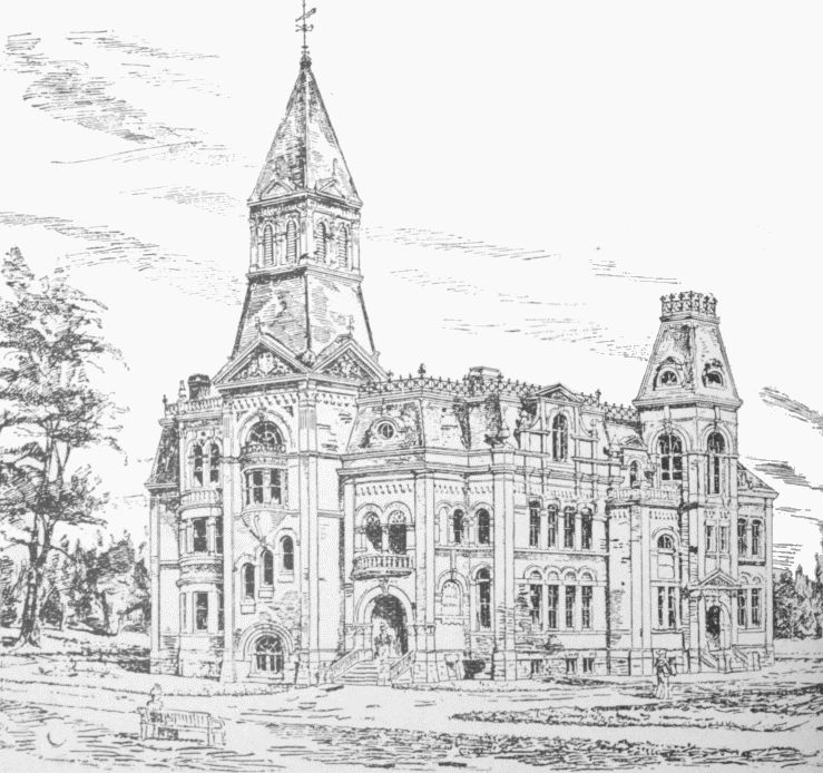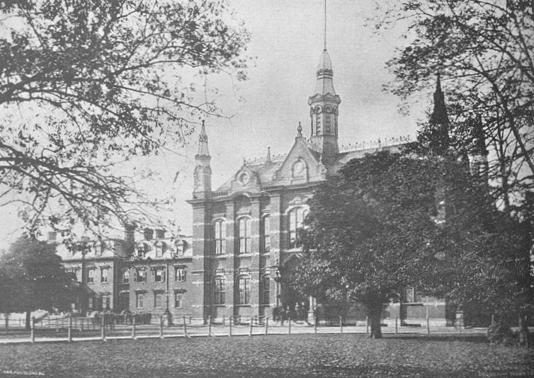 Again, from the extraordinary multiplication of very beautiful residences on every side, round and in the town, it is evident that a high ideal of a refined domestic life is present to the minds of a great number of the inhabitants. But a tendency to the ideal in another direction has of late years particularly asserted itself, in the deliberate pulling down of barriers and throwing open to the public view the groves and other ornamental surroundings of private residences. A laudable desire is thus shown to come near to the condition of a perfect community, wherein moral defences suffice for the protection of property, and implicit confidence is put in the civility and good-will of neighbours and the public at large. To plan houses and lay out grounds from the very first so as to conform to the new practice is now, as a matter of fact, quite common. All this is cheering as evidence of social progress. It likewise contributes to the general good appearance of the town. Already a certain noble air of spaciousness has been given to several thoroughfares and to the grounds bordering on them, an effect promoted also by the modern fashion of boulevarding. Then again, stroll round and inspect the educational institutions of the place, from the Universities and Departmental Establishment downward, and see how many things there are in their internal and external arrangements and their respective environments, which more than come up to the imaginings and hopes of the old speculative writers on such subjects. Or let the benevolent institutions be visited, the hospitals, asylums, refuges, homes for the young and old, and let the general roominess and pleasantness of each be noted, or go to the fields set apart for athletic sports and games, to the parks, the grounds allotted to the Industrial Exhibition purposes, or for the encouragement of horticulture; or drop in on a sunny day—and there are a great many such in this region all the year round—at the banks, at the places of business of the wholesale merchants, at the offices of the large law firms, at the chambers of the judges at Osgoode Hall, or at the great printing-houses. Is there not a bright, airy, ideal aspect about them all, as seen at the present hour in their comparative newness? Are there many places where the multiform affairs of men are carried on under conditions more favourable, on the whole, to happiness, health, and length of days? The exceptions to the rule which will occur are temporary, and they are engaging the attention of the proper persons. Three court houses on different sites have been seen in Toronto during its brief history, two of them abandoned and the third about to be abandoned, not on account of decay, but from having become ill-adapted to the wants of a rapidly growing community. A fourth, of dimensions and capacity suited to the city and county, is at present under construction. In like manner, at least three sets of parliamentary buildings have been seen here, also on different sites. A fourth will, ere long, be ready for occupation.