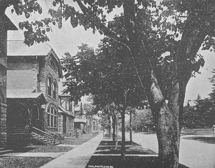 Philadelphia, Washington and other places in the United States have been laid out from the beginning in accordance with idealistic schemes. For systematic regularity these cities would meet with the approval of even Lord Bacon or Sir Thomas More. From a utilitarian point of view, the results have been sufficiently satisfactory. Boston, and some of the other older towns of the Union, came into being casually, as it were, and spread in a cramped, circumscribed sort of a way, somewhat after the manner of the old walled towns across the Atlantic, and their later inhabitants have been put to much trouble and expense in overcoming consequent inconveniences, from some of which they are not entirely freed to this day. In Canada, there have been experiences of a similar character. Through the circumstances of their original development, Quebec, Montreal and even Kingston are all more or less affected in the direction and dimensions of their streets, and assessments for the needful straightenings and enlargements have been heavy. Our modern Winnipegs, Brandons, Reginas, and other burghs that are to be hereafter in our great North-West, will doubtless profit by their acquaintance with the past of their elder civic sisters, and be saved from several public inconveniences in the future.