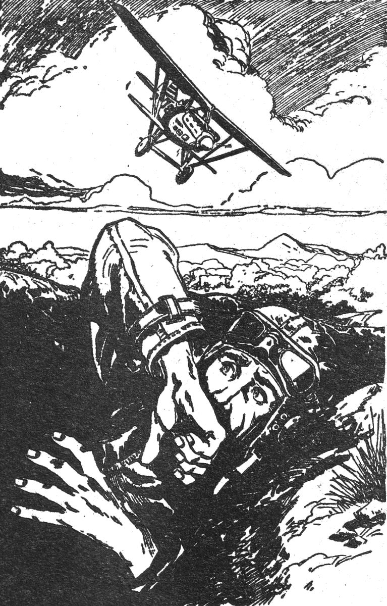 Vilmsky hesitated, clearly undecided as to whether to proceed with the execution or see what it was the machine had dropped. He looked up again at the aircraft, now banking dangerously, its wing-tip almost touching the wall as it turned. A hand and arm appeared over the side of the cockpit, jabbing downward vigorously. It seemed to decide Vilmsky, who perceived, at any rate, that he had nothing to fear. An order brought the butts of the rifles to the ground again, and he walked quickly to the object that had fallen.