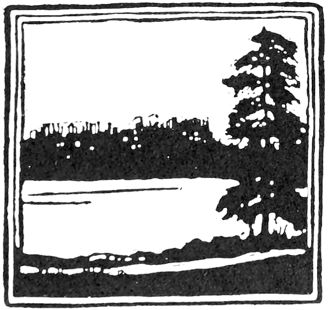 I paddle along briskly; though the shore is hidden, I keep my course by the breeze upon my cheek. Suddenly looms up Herron Hill, lately crowned with lofty maples and yellow birches; now that the wood-cutters have rudely handled it, a jungle of broken boughs and tree-tops, tangled with blackberry and raspberry bushes. Then comes the long shoal over which I paddle slowly, black rocks almost grazing the canvas. In the early spring, big trout lie along the edge of this shoal, to feed on the minnows that lurk for safety in shallow places, and one can get a good catch by trolling to and fro along its outer edge from cove to cove. Then comes on the right a deep reedy bay where ducks feed in September; a famous place for cranberries and high-bush blueberries. I paddle on, and come at last to the inlet, the mouth guarded by wide patches of white and yellow lilies, through which the canoe drags slowly with a pleasant swishing sound. The inlet narrows; on either hand are broad flats covered with pitcher plants, where gray stubs of trees, killed by the annual overflow, stand up stiffly. Someone puts a plank or two in the dam of the outlet, so that there may be water for the grist mills in September, but this floods the flat lands and kills the trees. Thus, ever, beauty suffers through utility. Now, the bank is high and wooded on the right, and there is a grassy place, where a wood road strikes the still-water obliquely. It is one of my favourite retreats: I often lounge there on midsummer days. The wood road leads to a deserted lumber camp; the buildings have fallen down, but beams and timbers are sound. There I came years ago, when I was building the studio, to get boards, to make rafts, tow them downstream through the lilies and float them across the lake.