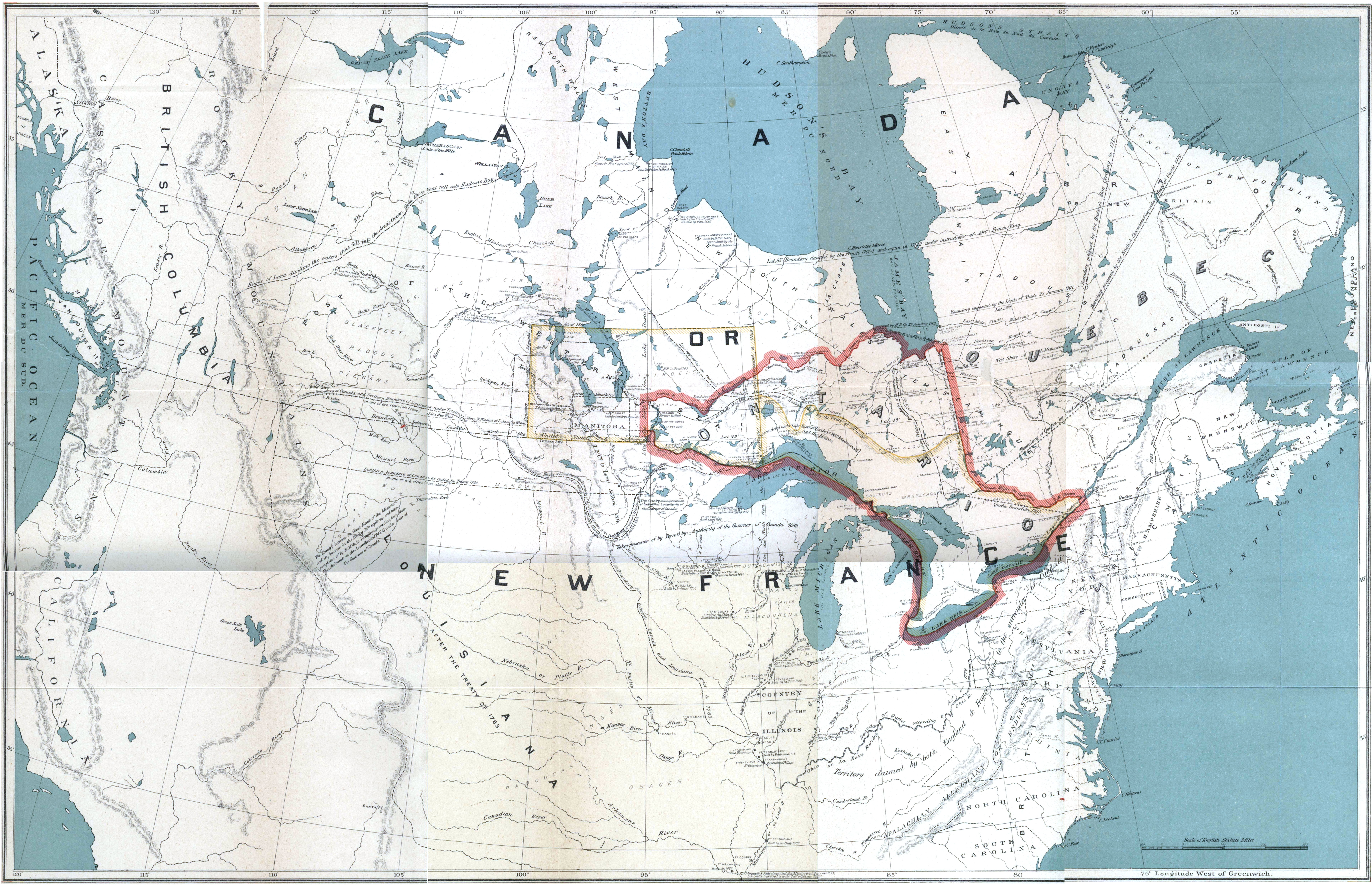 Reduced copy of Map prepared by Stanford’s Geographical Establishment in 1884 for the Ontario Government, and used in the argument of the Boundary Case. Corrected by James White, F.R.G.S., Dominion Geographer.
