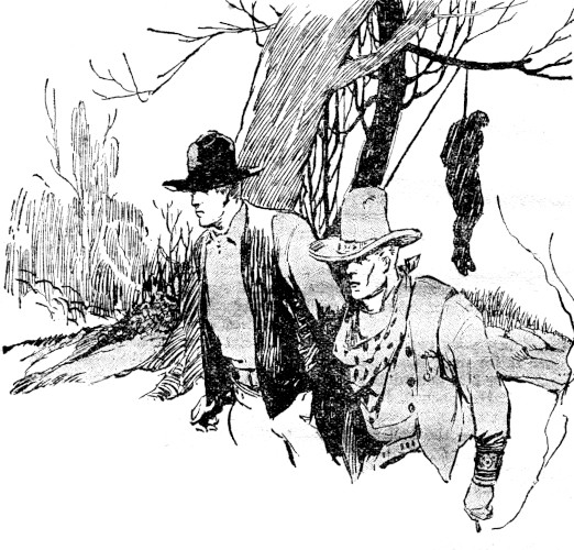 Mounting his horse, Sankey rode north, with Dolly by his side. Neither of them spoke until they reached the edge of the timber, and then they stopped. On the ground lay a handsome, dark young man, dead. He was well clad in garments that had known the hand of an expert tailor. A handsome gold watch chain lay across his vest. His boots were of the finest make. The face was of patrician mold and told of good lineage.