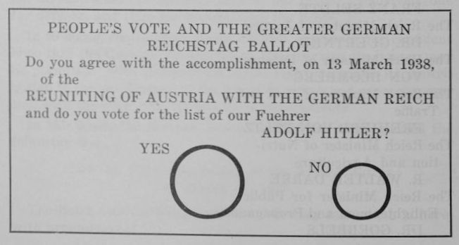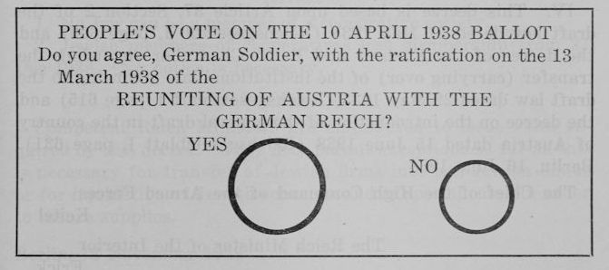 For the elections to the Reichstag in Austria, the same general rules which are valid for the elections to the Reichstag apply, inasmuch as the requirements of the plebiscite in Austria of 10 April 1938 do not necessitate different regulations.
